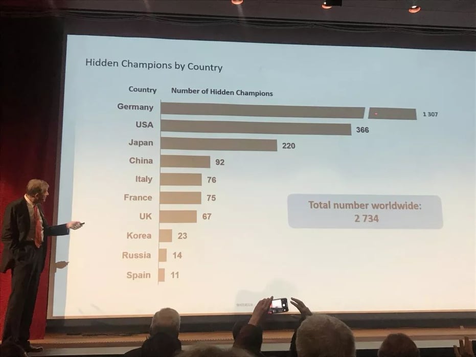 据西蒙教授的统计,截至 2019 年,全球共有 2734 家隐形冠军企业。