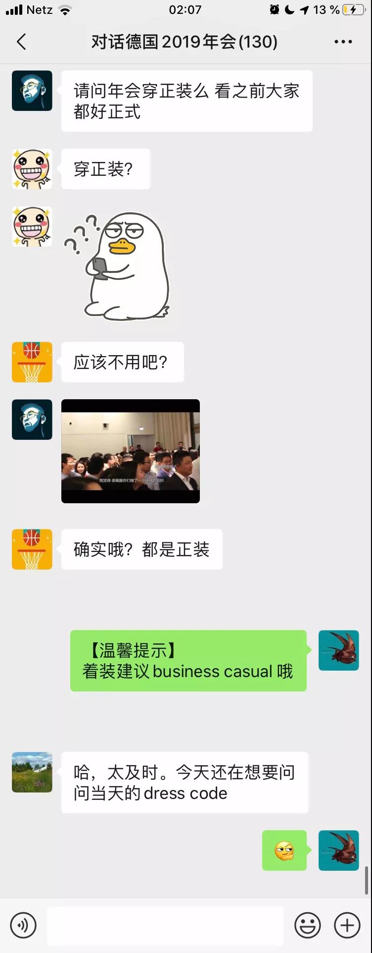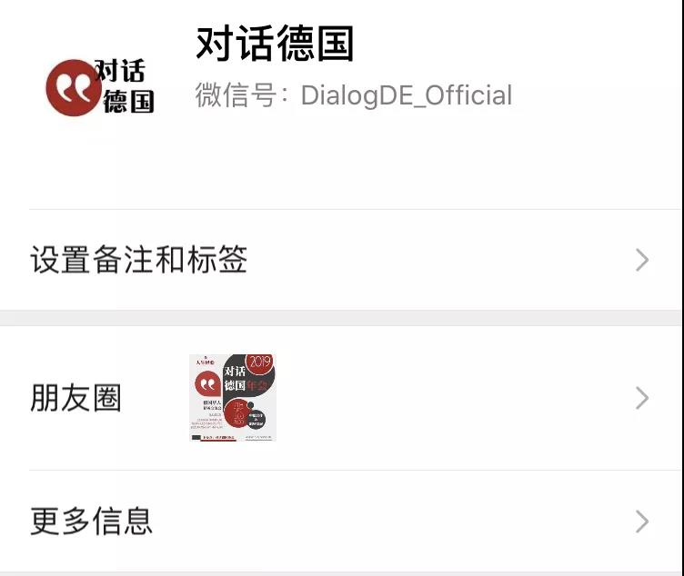 欢迎各位报名者加入年会专属微信群。即刻添加对话德国微信小助手 DialogDE_Official,并发送你的真实姓名进行验证,验证成功后即可进入社群。放弃加入社群将错过与同城伙伴拼车同行及抢先对嘉宾进行提问的机会哦!